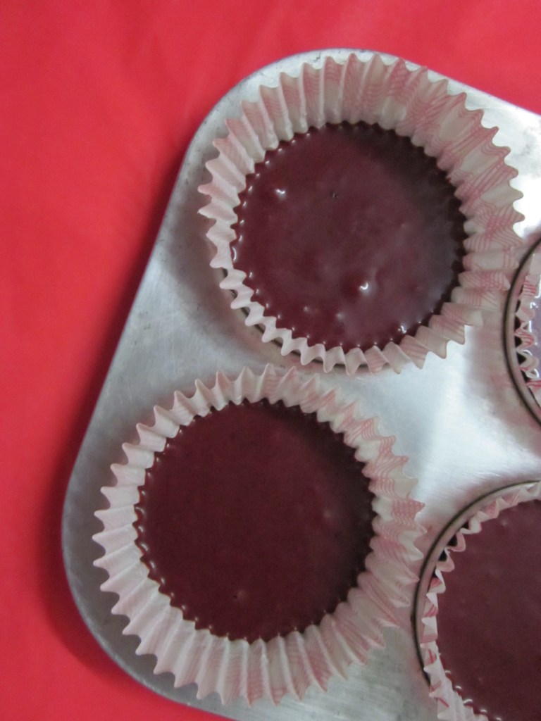 5. Pour into a tray lined with cupcake liners and bake for 15 minutes. Remove from the tray and cool on a wire rack.