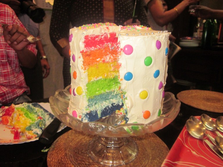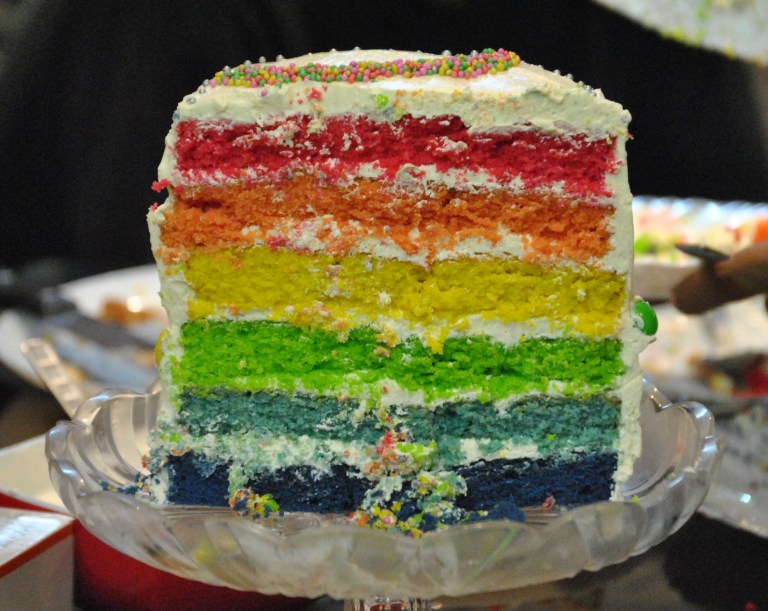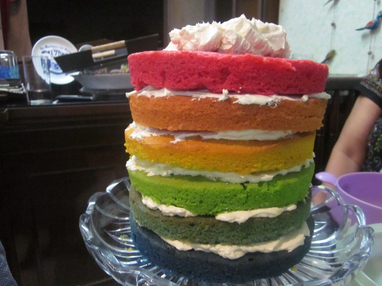 Rainbow cake with Swiss Meringue Buttercream frosting