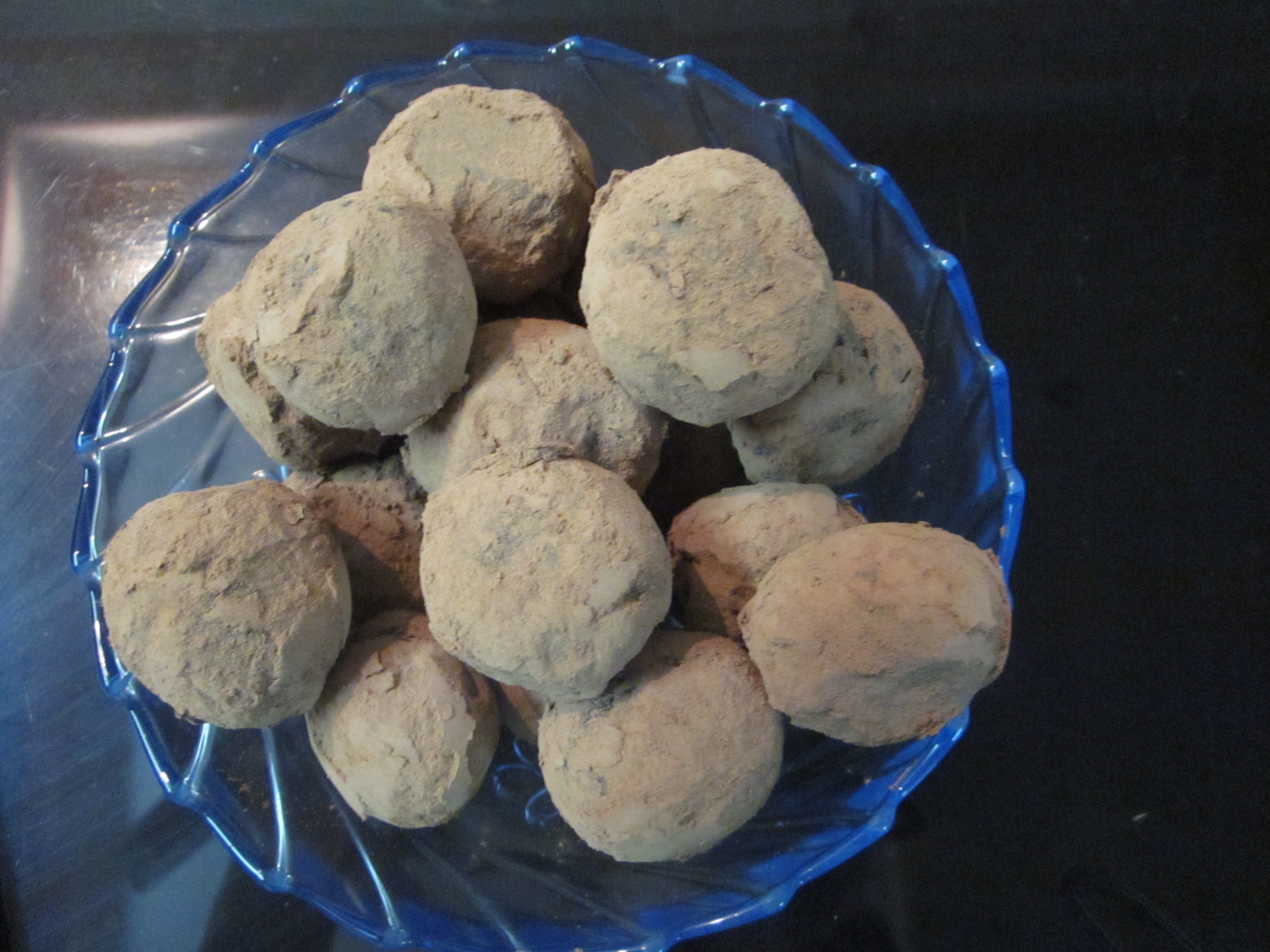 3. Chill again for 5-6 hours. Remove and roll in cocoa powder. Bite into one and tell me how good it is! 🙂