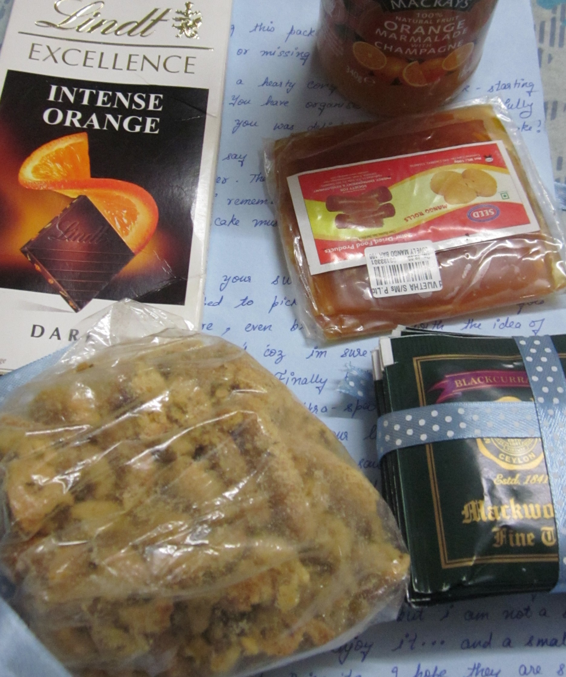 6. aw, ur just too nice charis! seriously this is nothing compared to ur lovely package but i loved being a part of such a wonderful event 🙂 waiting to read from the others who took part… and yeah im all up for the next one too! (p.s: cringed at the state of masala biscuits, i was so hoping they wud reach intact)