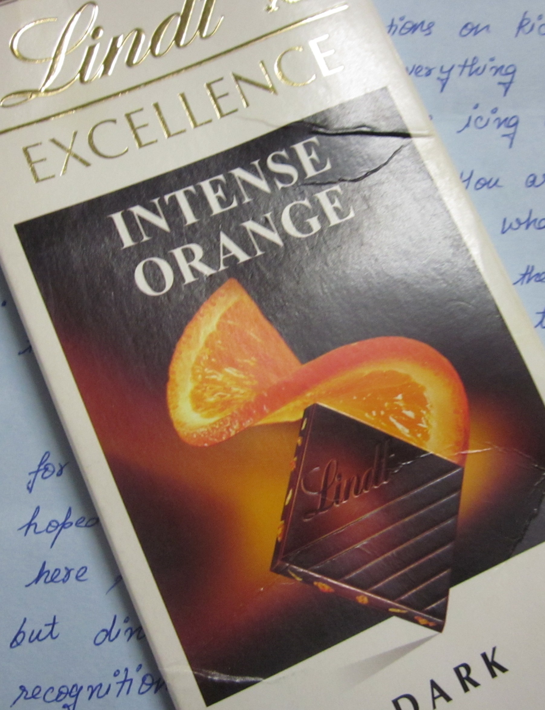 Lindt Intense orange dark chocolate! I’m saving this to savour it greedily, all by myself 😀