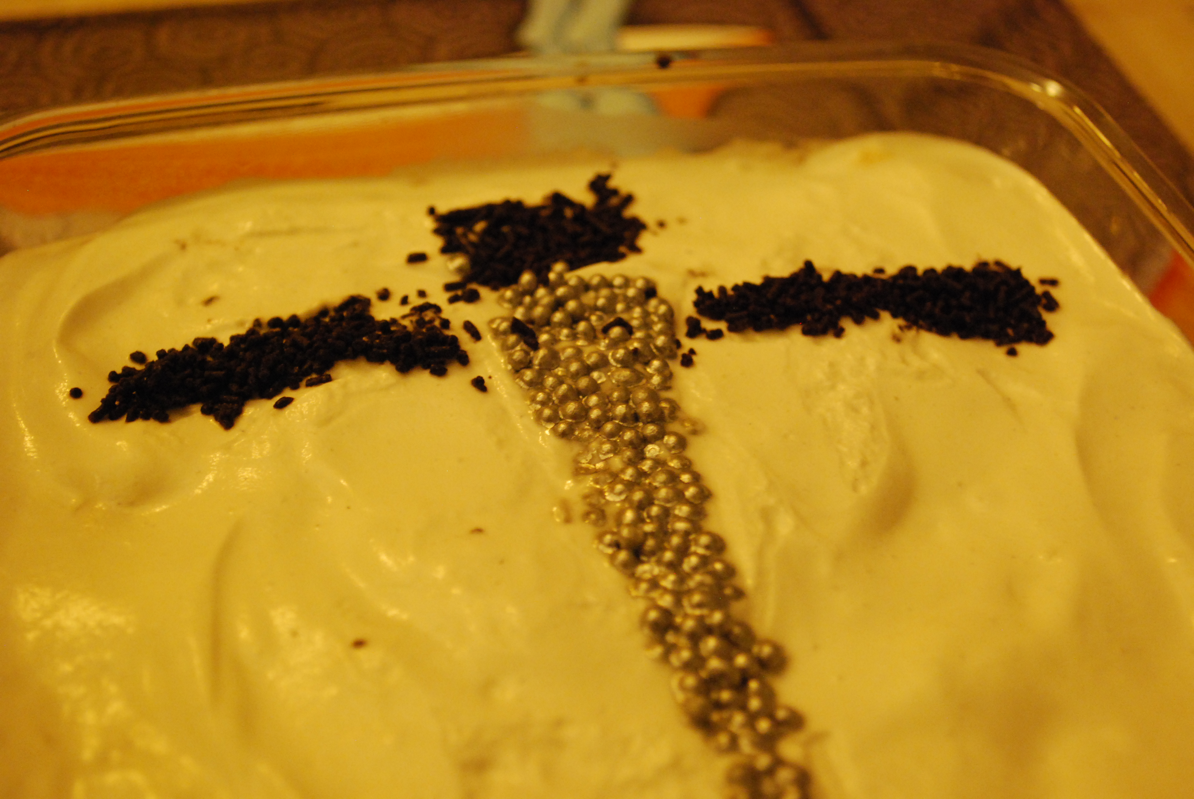 I tried to create Anduril (Aragorn’s sword) on my Banoffee pie. It is of course, more the spirit of the sword, than a realistic version 🙂