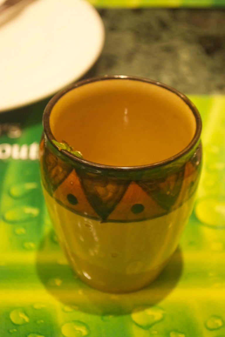 The evening started with some delicious mor– a spiced buttermilk drink. I think I had about 10 glasses in the course of the evening.