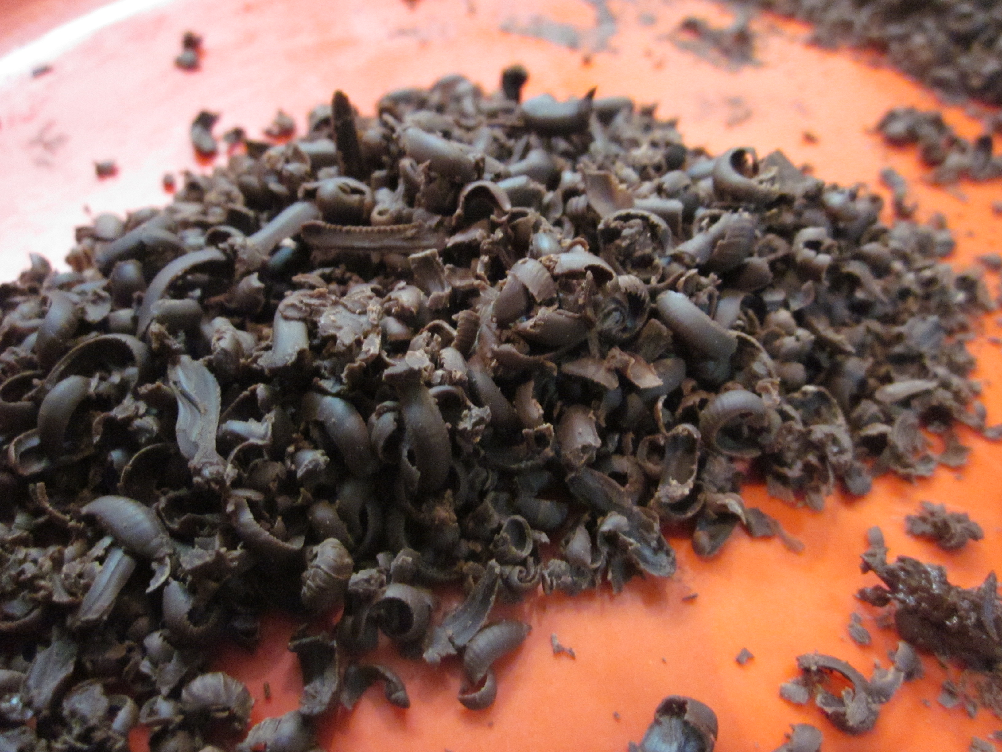 3. With a knife spread a little bit of cream around the sides and top of the cake and press the grated chocolate all over.