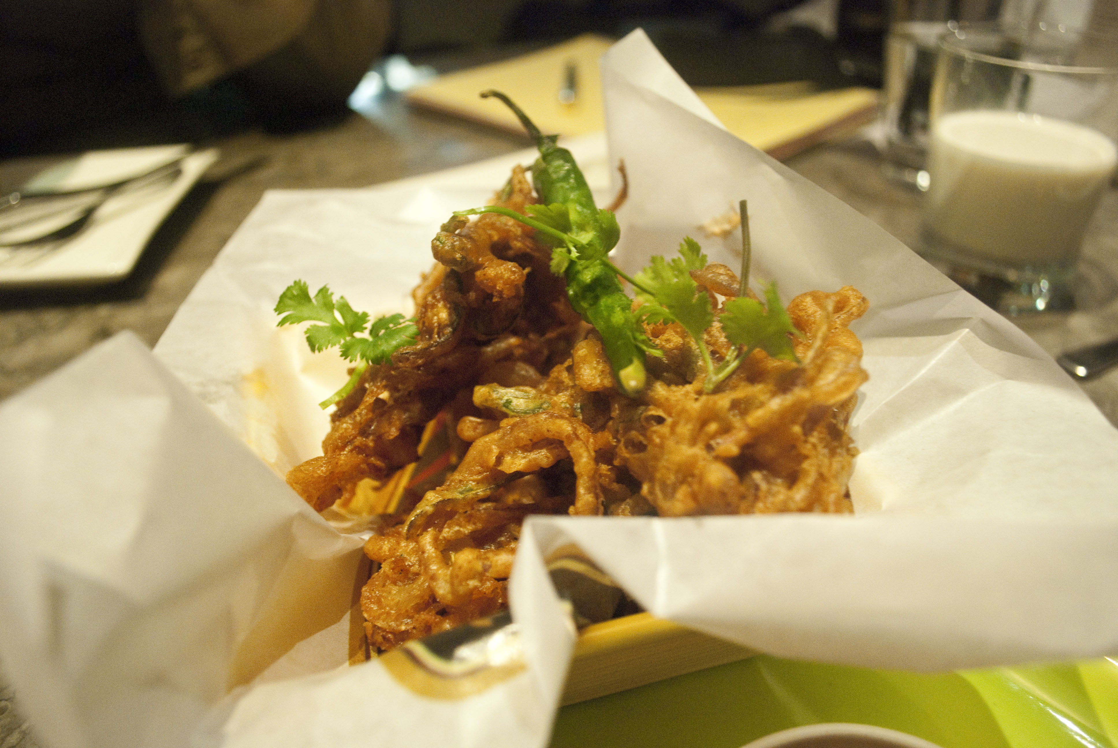 The Onion and green chilli fritters were like Onion bhajis, but were dusted with Ancho chilli. Rather greasy, these ones scored a 5.