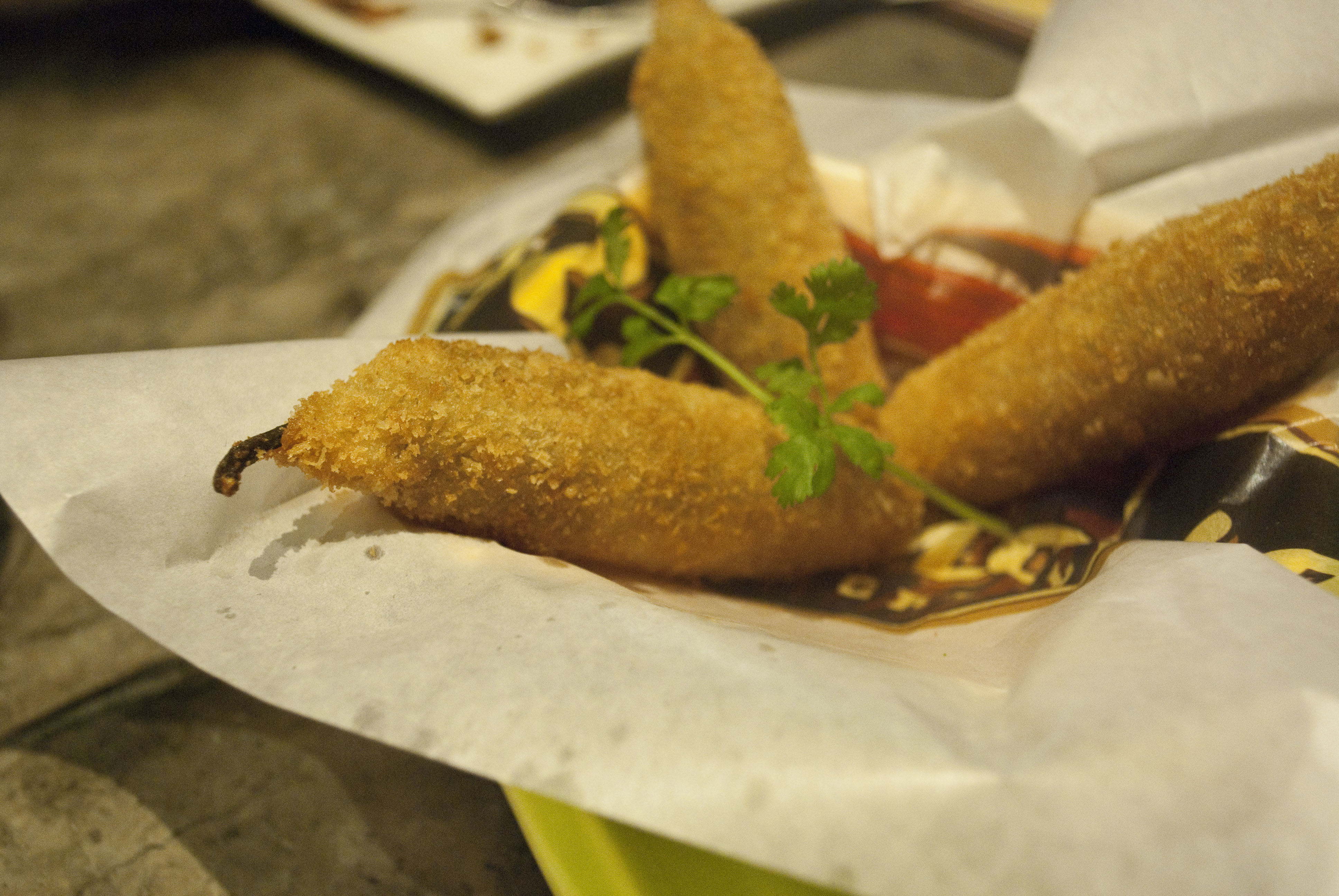 And finally, we got the Ghost chilli fritters. These were fried green chillies filled with Cheddar and Ghost chillies. One bite, and I was done. This one was a 9.