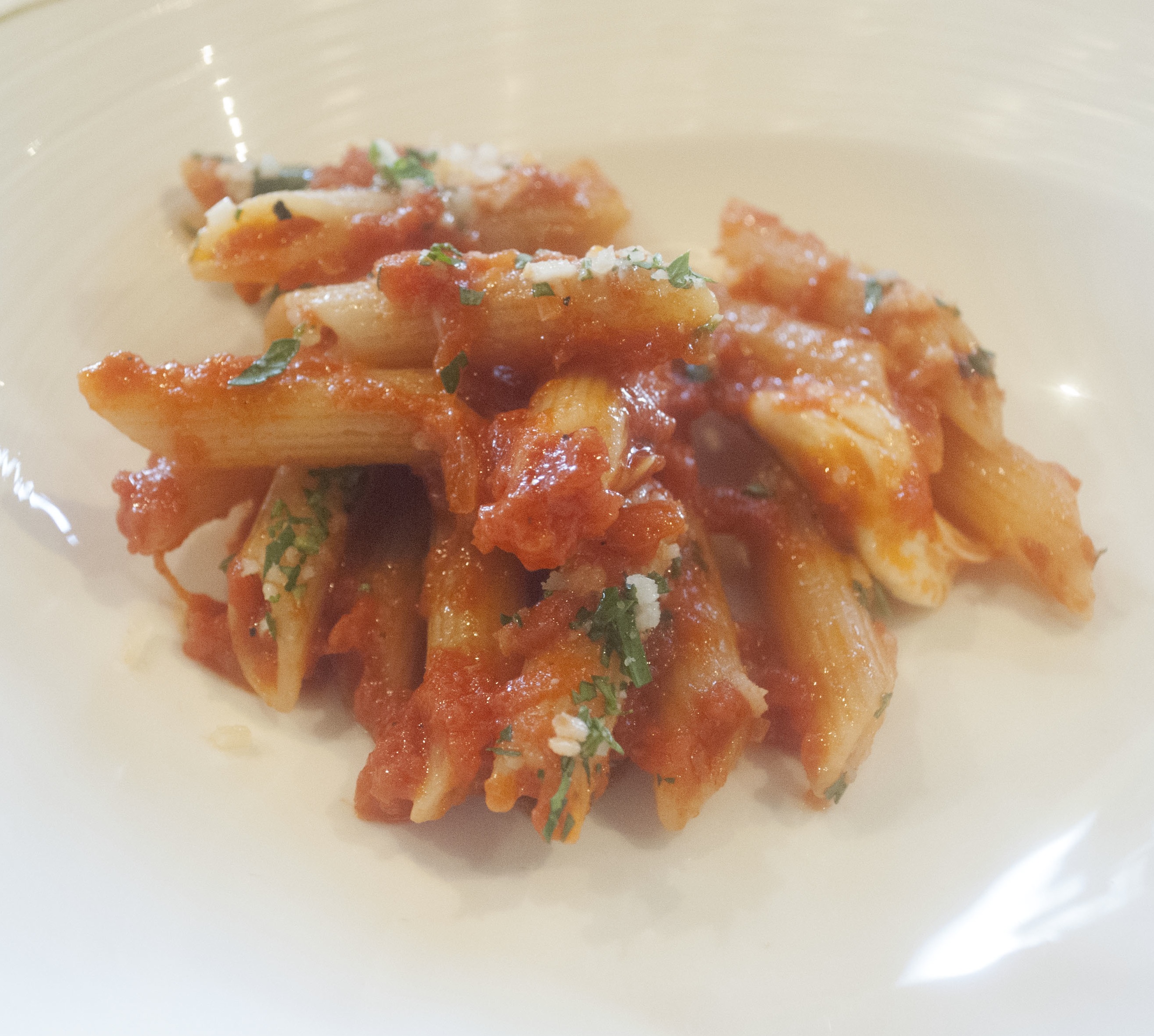The pasta was an example of how just a few simple ingredients can result in a delicious, wholesome dish. The sauce was the right mix of cheese and tomato, with small bits of fried eggplant.