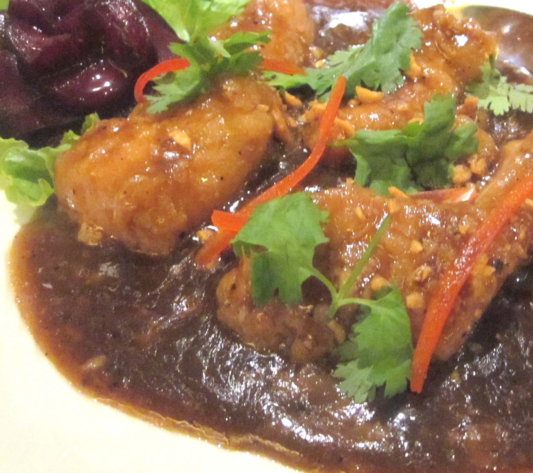 We started with Pla Lard Phrik Krob (Sweet chilly fish) and Yam Woon Sen Koong (Thai glass noodle salad with shrimp).