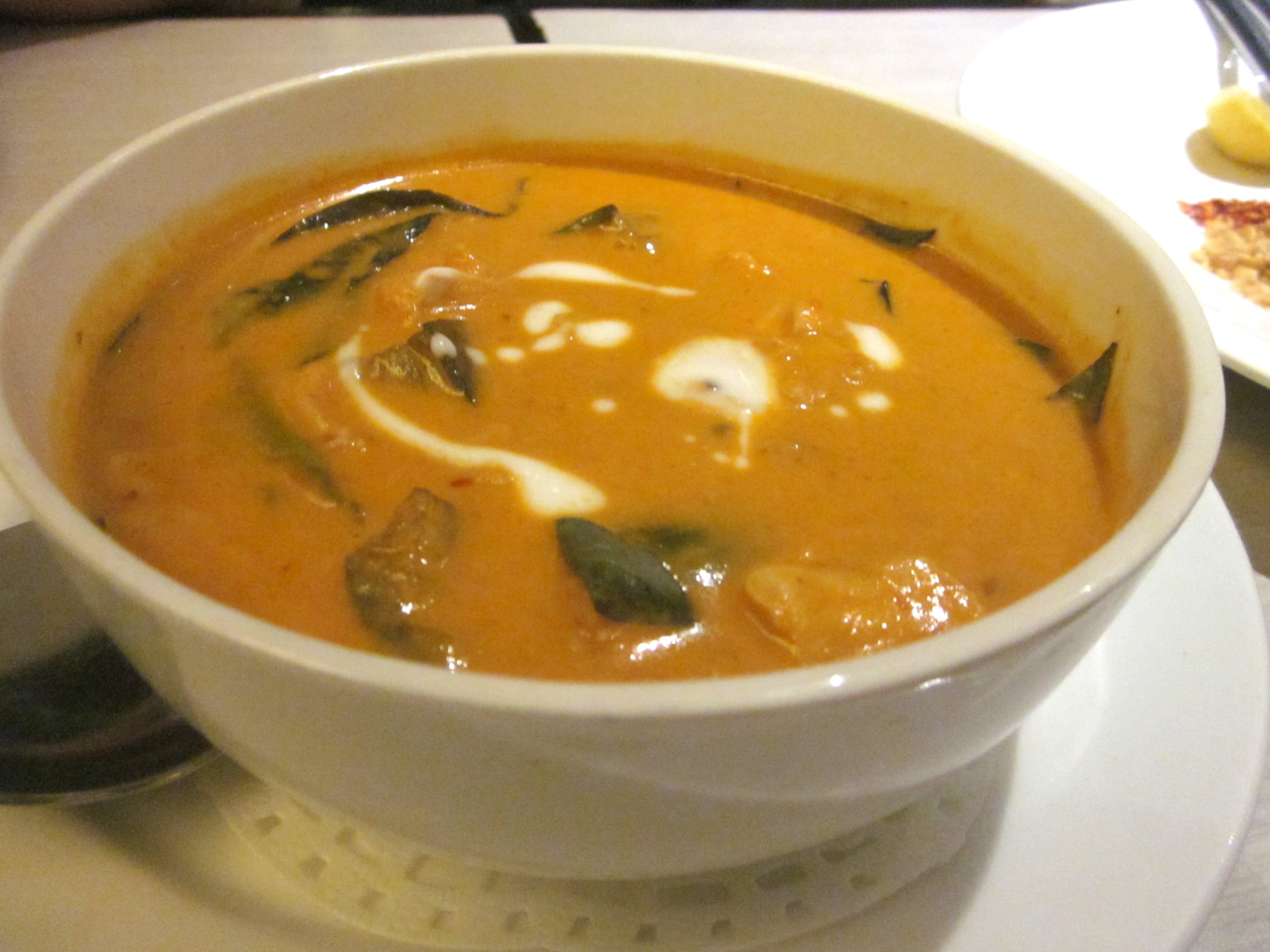 The Thai red curry was just as good as I expected – rich, coconut-ty, and spicy. It was bursting with basil and lemongrass flavours, and I loved the softened bits of aubergine and bamboo shoot. The chicken was almost secondary – I could drink this gravy straight from the bowl! Look at the bright, happy colour!