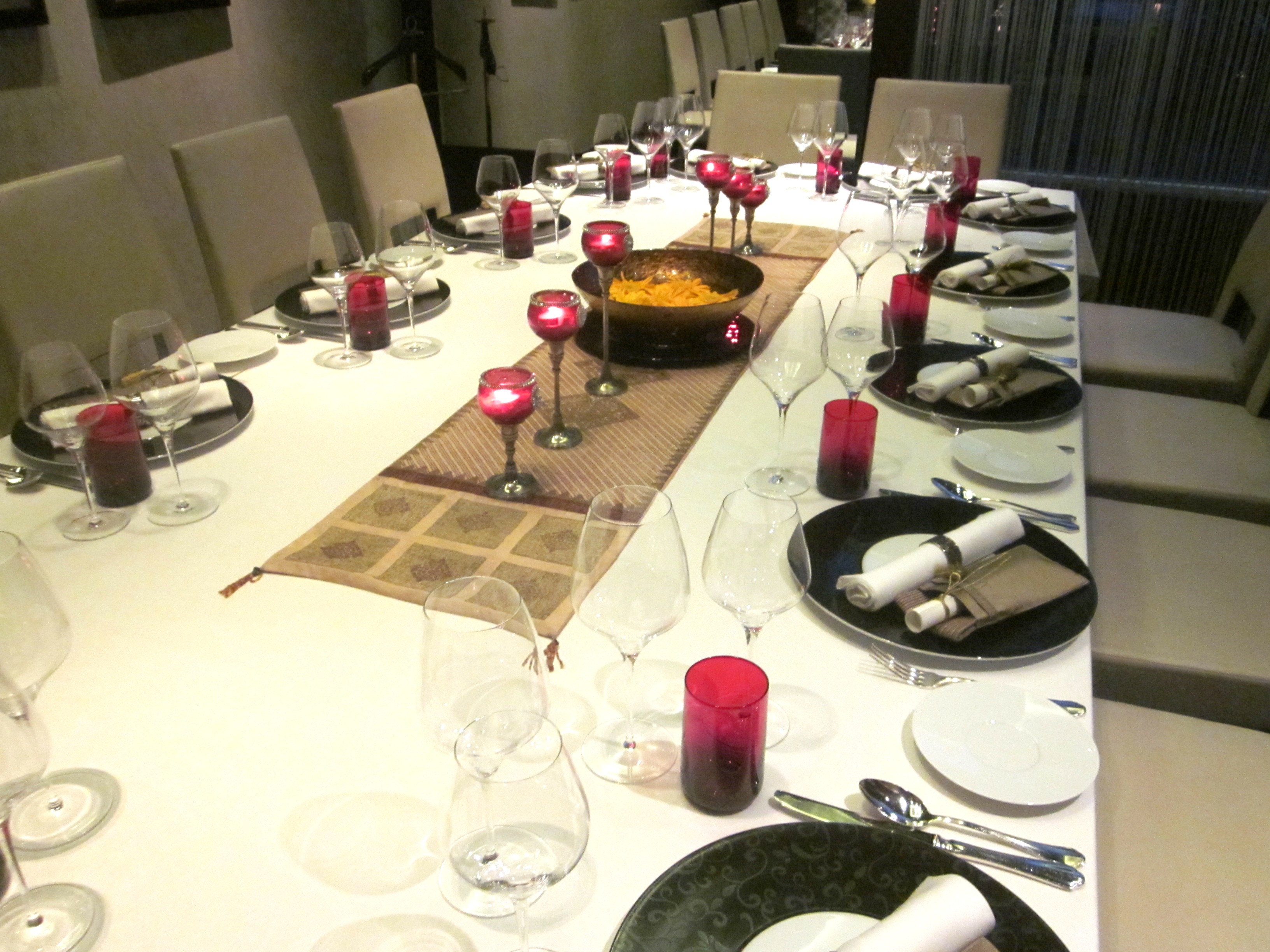 The table was set most tastefully. I love the red accents with the gold. Don’t you?