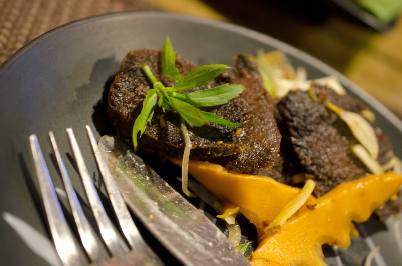Kelsa (Manipur): A spicy goat dish cooked with a slightly sour berry that looked a lot like a blackberry. The meat was tender and falling off the bone – perfect.