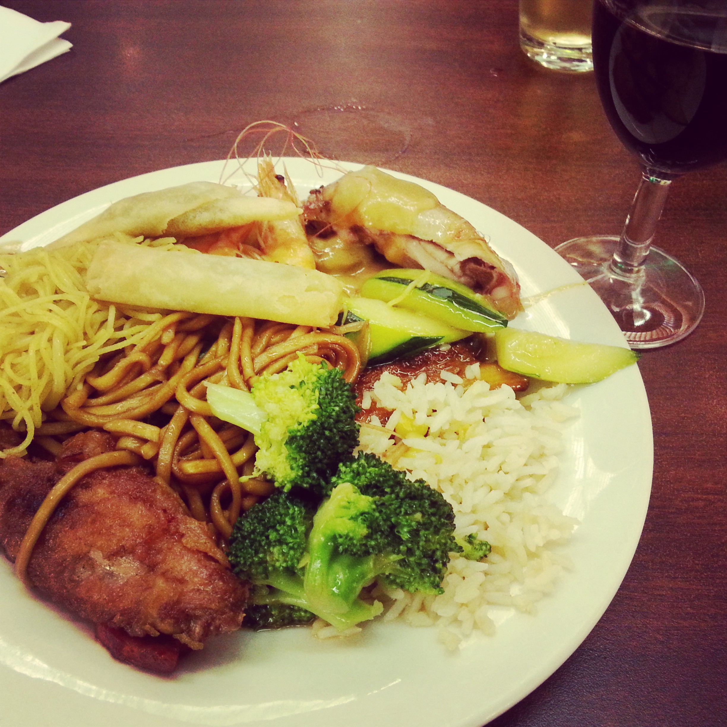 35. China town platter with red wine to wash it all down. Totally your money’s worth.