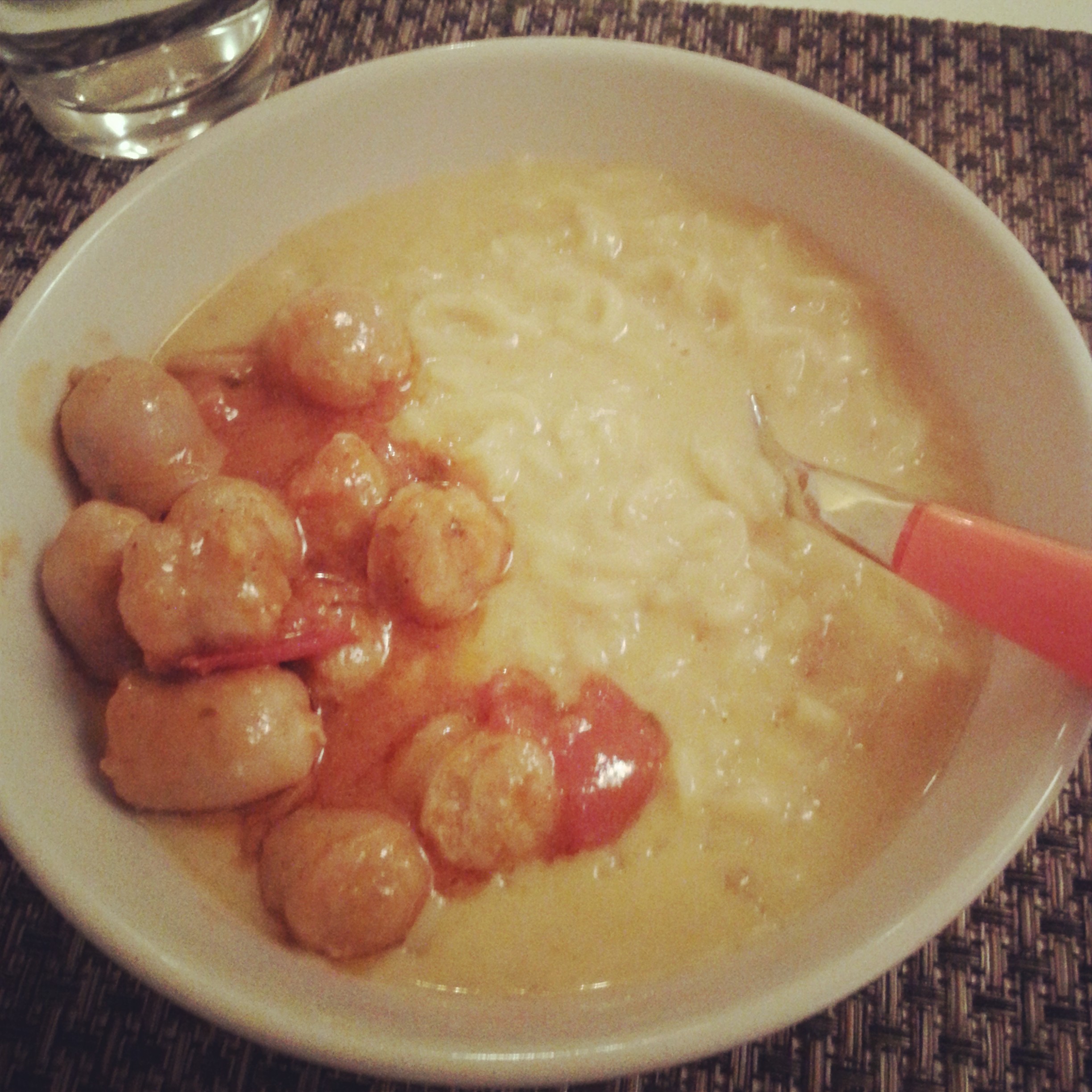 90. Cheese Maggi with spicy sausages – a little taste of home.