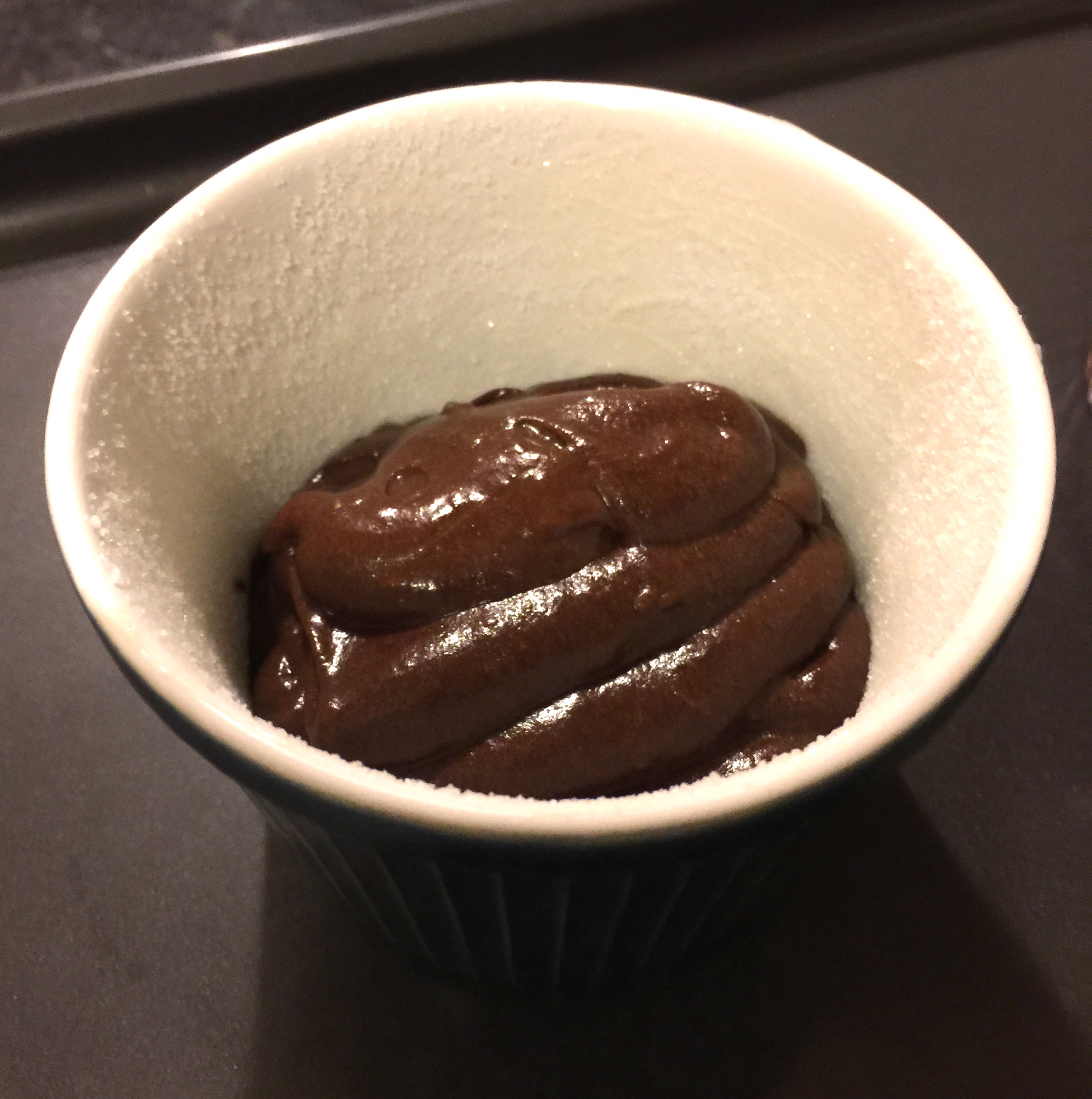 1. Preheat the oven to 200º C. Grease two small ramekins with butter and then scatter some caster sugar into each bowl, turning the ramekin around as you do, so that the base and sides are well covered. Tip the ramekin over once done, and throw away any sugar that falls out.