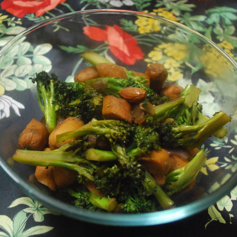 Music memories and a Broccoli, sausage, and almond stir fry bowl
